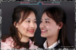 Bệnh nhân nữ, hô hàm trên & cười hở lợi. Môi trên mỏng, hớt, góc [...]