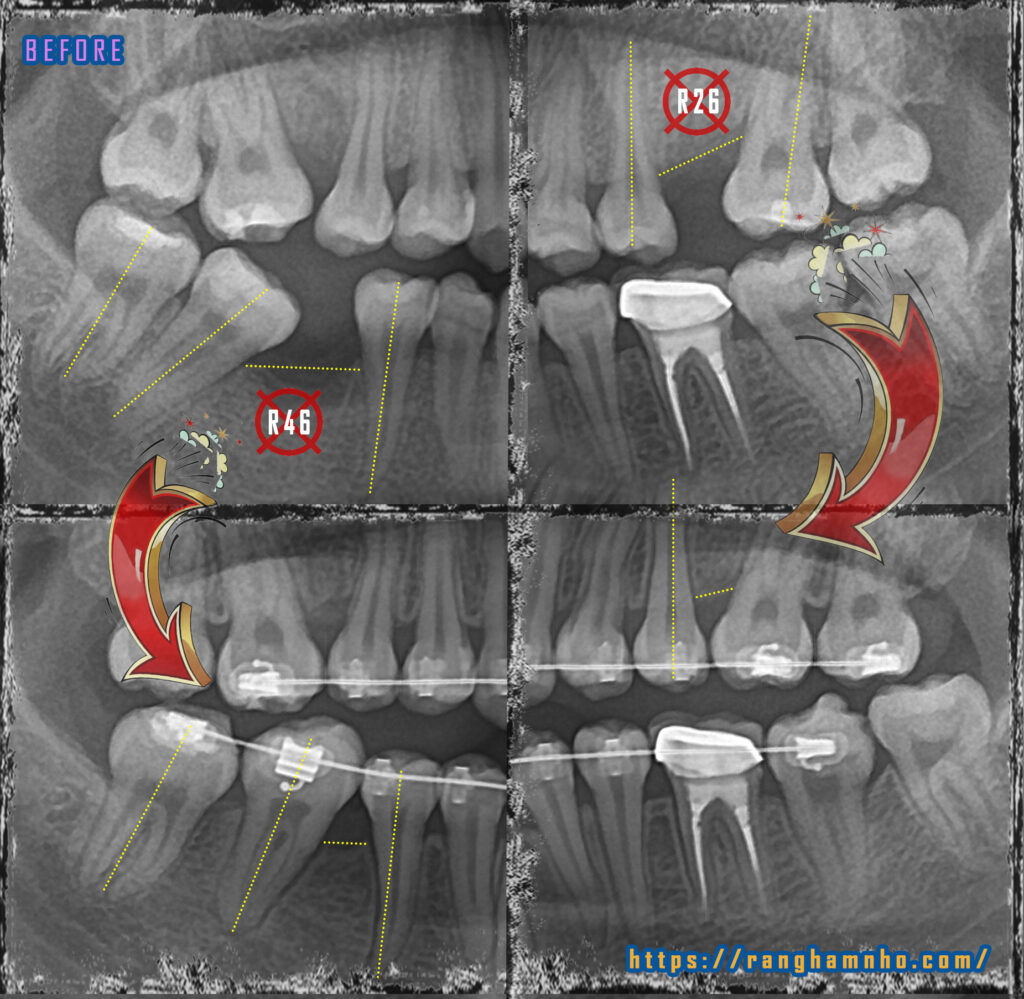 CASE MẤT RĂNG 26 46, DI GẦN RĂNG 27 47 THAY THẾ RĂNG 26 46 MẤT