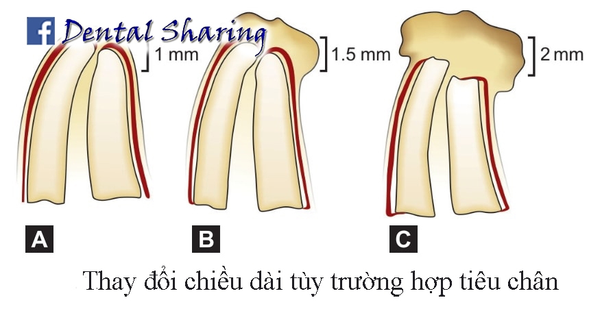 – Tiêu xương quanh chóp + chóp răng: giảm 2mm