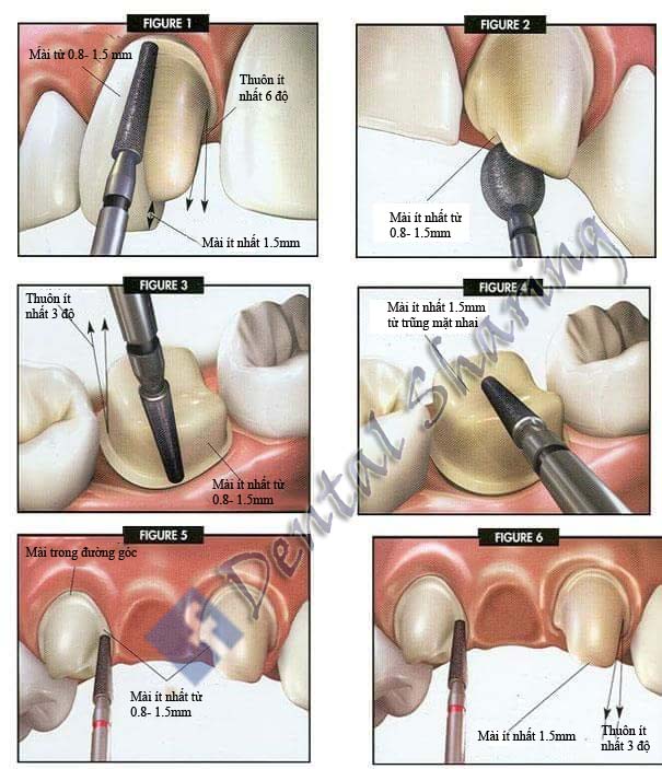 Ảnh dưới đây gợi ý vài thông số mang tính chất tham khảo khi sửa soạn cùi răng làm chụp và cầu răng..!