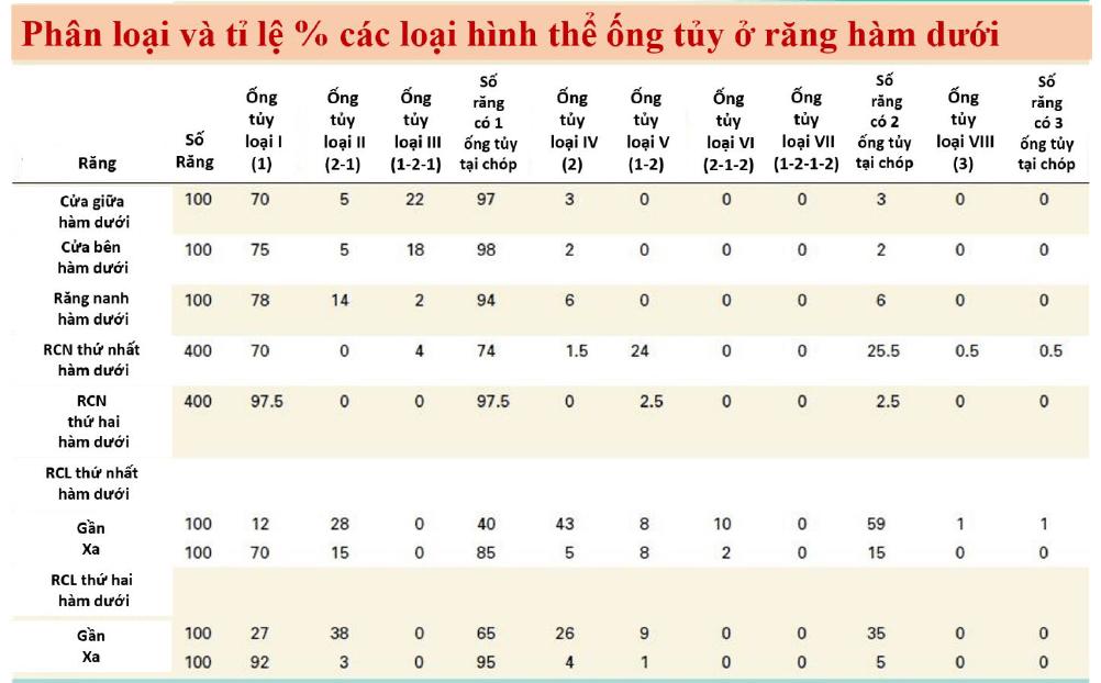 |TỈ LỆ CÁC LOẠI HÌNH THỂ ỐNG TỦY|