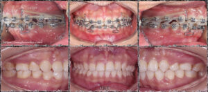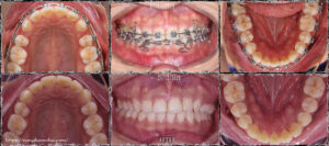 Kế hoạch điều trị: Nhổ 2 răng số 4 hàm trên, đóng khoảng bằng chun cuối, giải quyết khớp cắn sâu bằng cách đánh lún nhóm răng cửa và làm trồi nhóm răng hàm. Sử dụng T- loop SS 17×25 ở hàm dưới để đánh lún ở giai đoạn cuối.