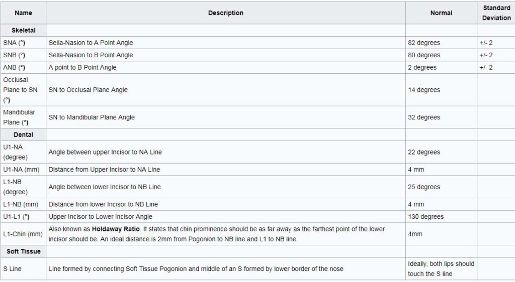 – Trên răng, ông sử dụng các góc và khoảng cách U1- NA, L1- NB, U1- L1, L1- Chin